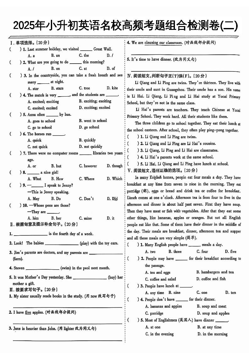 《小升初英语名校高频考题组合检测卷1-10》mohen9991个月前更新关注118《小升初英语名校高频考题组合检测卷1-10》此内容为付费阅读,请付费后查看¥9.9钻石会员免费立即购买您当前未登录!建议登陆后购买,可保存购买订单付费阅读 ——预览已结束,还剩9页未读——开通会员后可免费下载高清完整文档 课程下载: 此处内容已隐藏,请付费后查看 THE END六年级英语 分享QQ空间微博QQ好友海报分享复制链接收藏