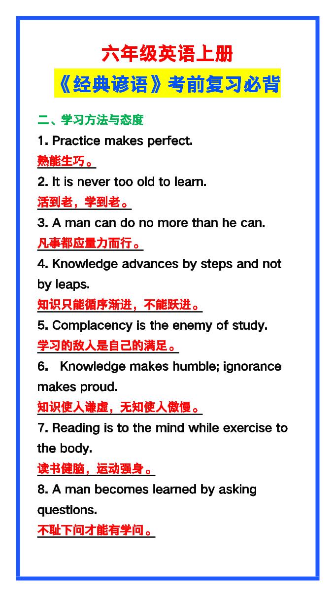 【2025秋新版】六年级英语上册《经典谚语》,考前必背!mohen9991个月前更新关注99【2025秋新版】六年级英语上册《经典谚语》,考前必背!此内容为付费阅读,请付费后查看¥9.9钻石会员免费立即购买您当前未登录!建议登陆后购买,可保存购买订单付费阅读 ——预览已结束,还剩4页未读——开通会员后可免费下载高清完整文档 课程下载: 此处内容已隐藏,请付费后查看 THE END六年级英语 分享QQ空间微博QQ好友海报分享复制链接收藏