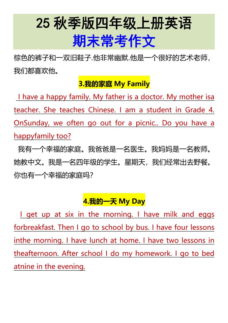 【2025秋新版】四年级上册英语•期末常考作文mohen9991个月前更新关注112【2025秋新版】四年级上册英语•期末常考作文此内容为付费阅读,请付费后查看¥9.9钻石会员免费立即购买您当前未登录!建议登陆后购买,可保存购买订单付费阅读 ——预览已结束,还剩2页未读——开通会员后可免费下载高清完整文档 课程下载: 此处内容已隐藏,请付费后查看 THE END四年级英语 分享QQ空间微博QQ好友海报分享复制链接收藏